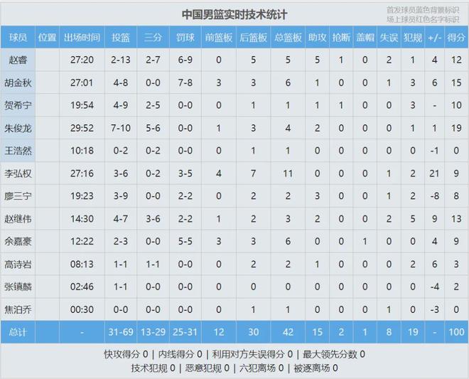 陈盈骏26分3板4助、林庭谦22分3助、高柏铠19分11板4助2断3帽、卢峻翔15分8板。最后看看数据,说说你的感受: